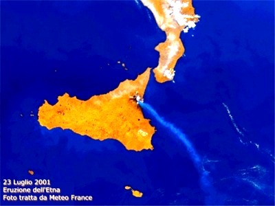 L'eruzione del 23 luglio 2001 vista dal satellite.