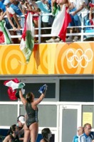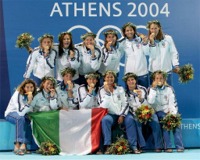 Gli 8 mila tifosi greci nello stadio del nuoto, calorosissimi ma altrettanto corretti, a quel punto sono ammutoliti. E' scoppiata invece la festa di un centinaio di tifosi italiani anche essi avvolti in bandiere, ma tricolori, che hanno chiamato sotto la tribuna tutto il gruppo del Setterosa. "Cinque cerchi, 7 rosa, un oro, 13 grazie" lo striscione mostrato alle nuove campionesse olimpiche.